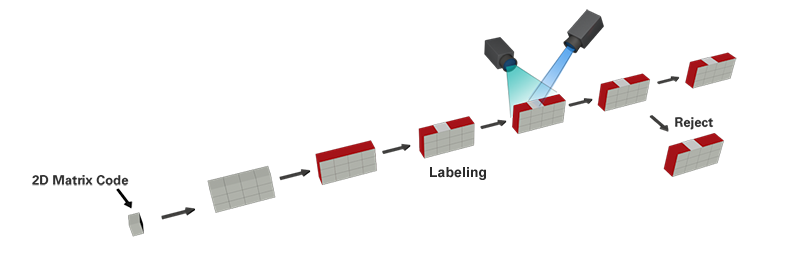 » Codes of one entirerow are checked by camera